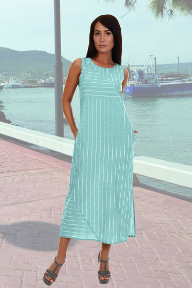 Классный льняной сарафан ! Тоненький тоненький! Но не просвечивает, за счет полосок ничего не видно, 54 размер подошел отлично, не тянется. Цвет соответсвует.
