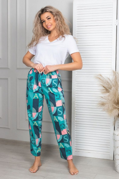 Фото товара 23188, хлопковые зеленые брюки с карманами
